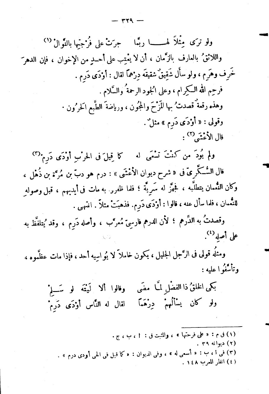ولو كان يسْألُهمْ دِرْهَماً ... لقال له النَّاس أوْدَى دَرِمْ