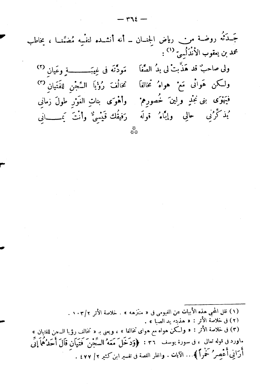 جَدَتُه روضة من رياض الجِنان - أنه أنشده لنفْسِه مُضّمنا، يخاطب محمد بن يعقوب الأندلسي: