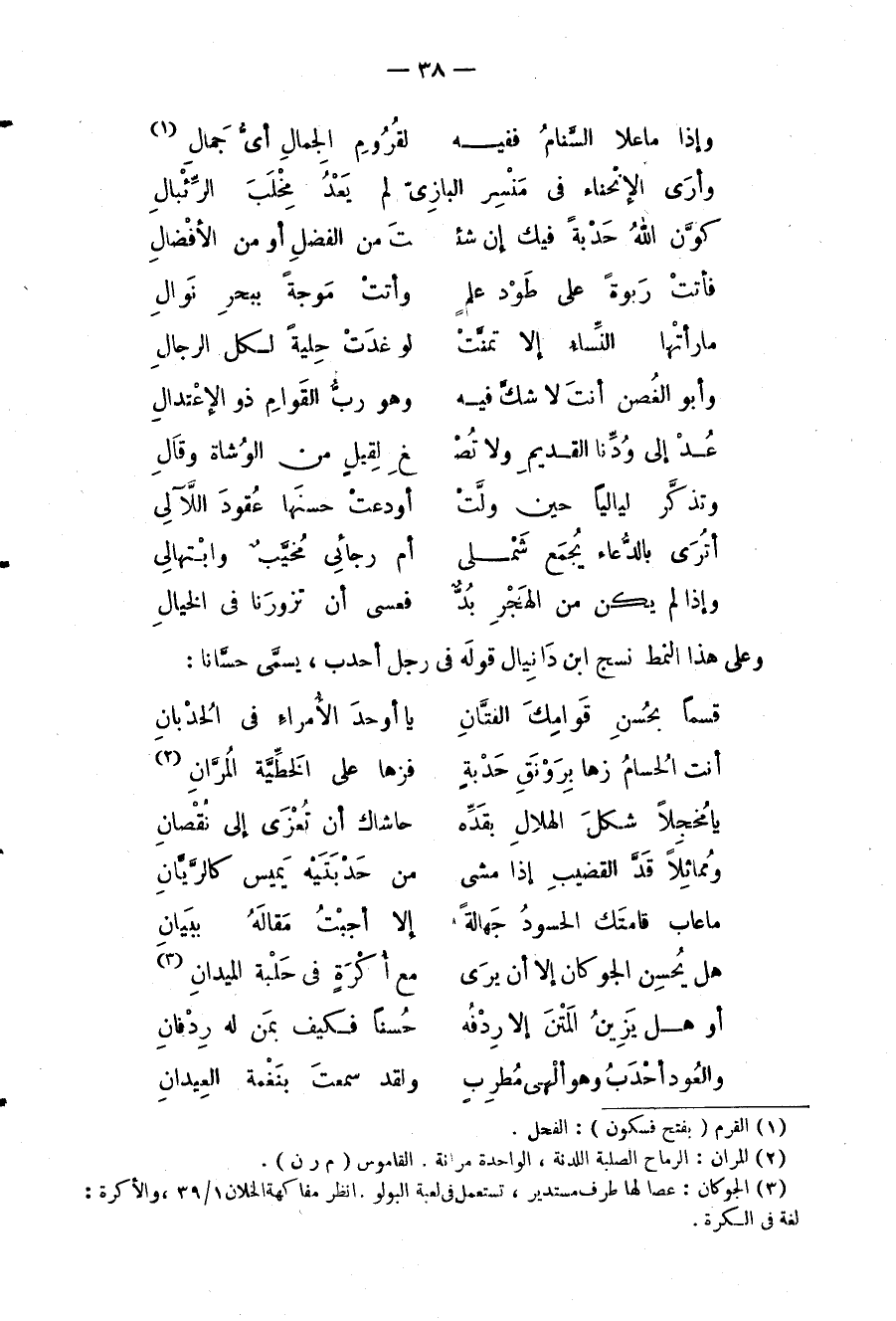 وعلى هذا النمط نسج ابن دَانِيال قولَه في رجل أحدب، يسمى حسَّانا: