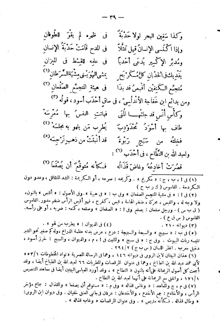 وكذا سَفِين البحر لولا حَدْبَهٌ ... في ظهره لم يقْوَ للطّوفانِ