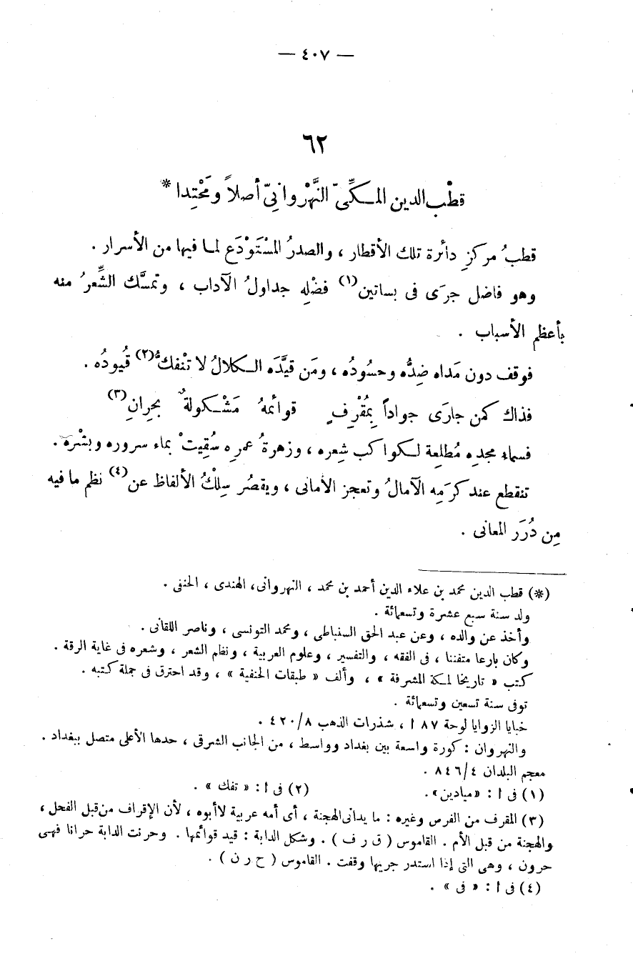 قطْب الدين المكّيّ النَّهْروانِيّ أصلاً ومَحْتِدا