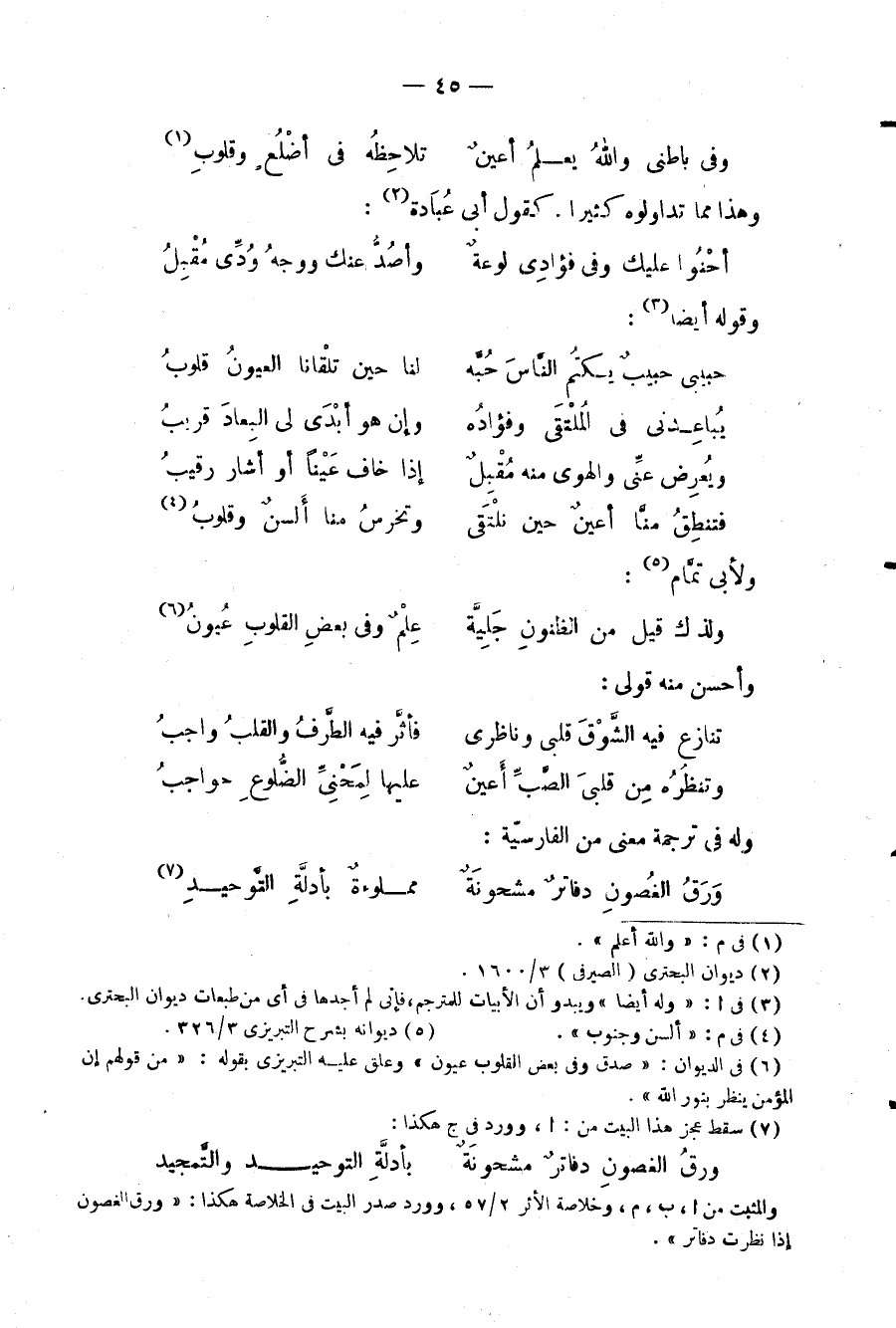 تنازع فيه الشَّوْقَ قلبي وناظري ... فأثَّر فيه الطَّرفُ والقلبُ واجبُ