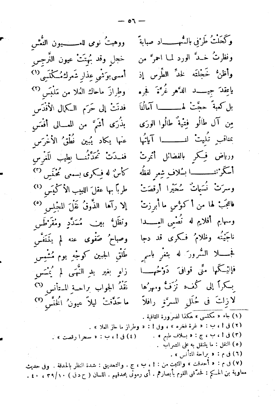 وكَحَلْتُ طَرْفيِ بالسُّهاد صبابةً ... ووهبتُ نومي للعيون النُّعَّسِ