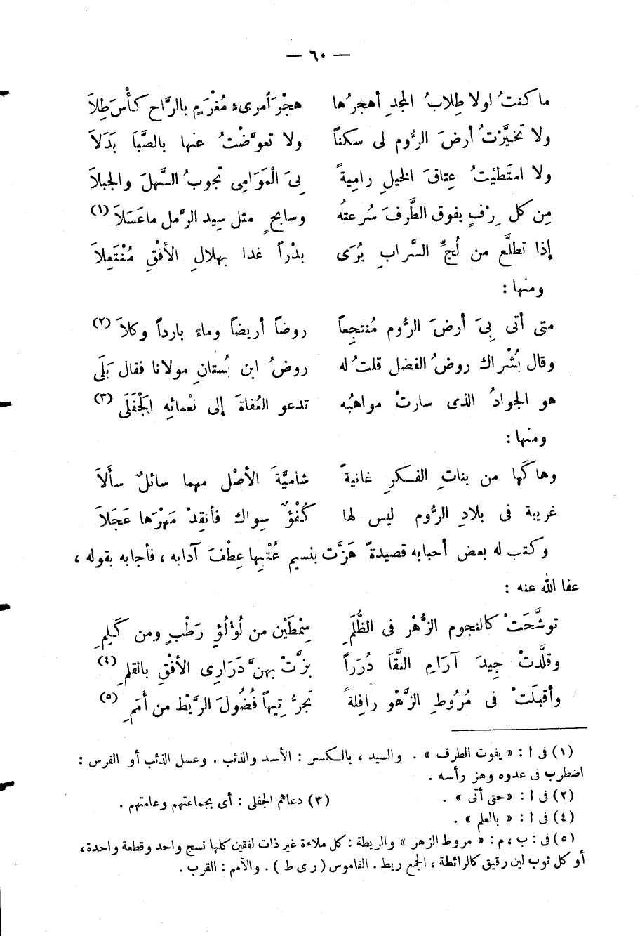 وقال بُشْراك روضُ الفضل قلتُ له ... روضُ ابن بُستانِ مولانا فقال بَلَى