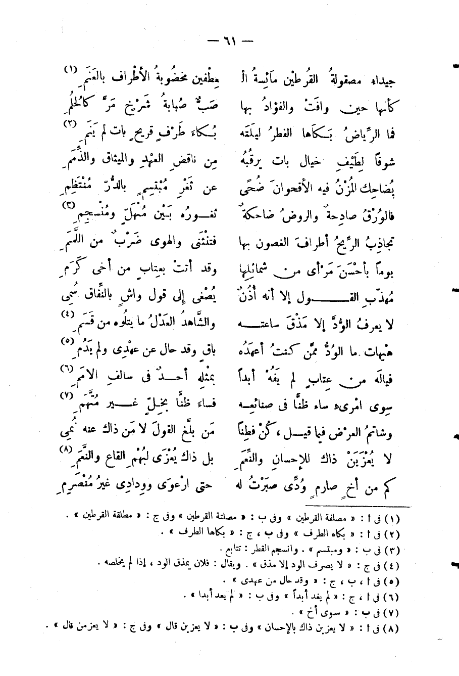 فما الرَّياض بَكاَها الفطرُ ... ليلَتَه بُكاءَ طَرْفٍ قريحٍ بات لم يَنَمِ