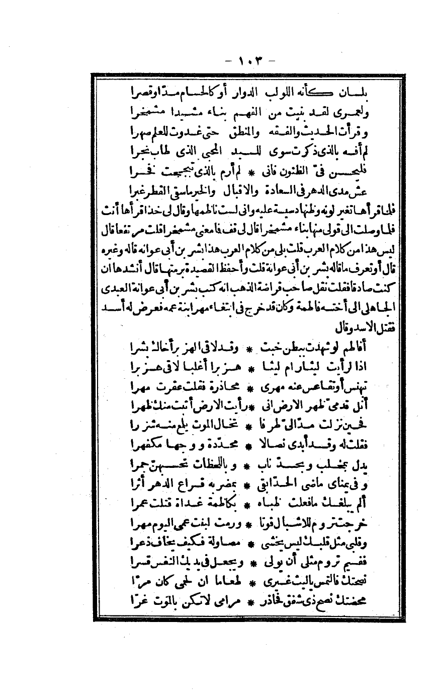 (وقرأت الحَدِيث وَالْفِقْه والمنطق ... حَتَّى غَدَوْت للْعلم صهرا)