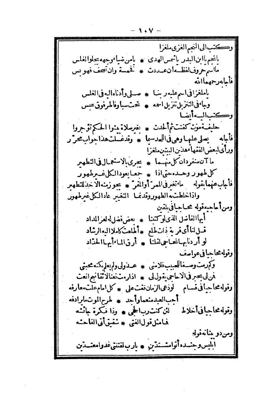وَرَأى لبَعض الْفُقَهَاء هذَيْن الْبَيْتَيْنِ ملغزا