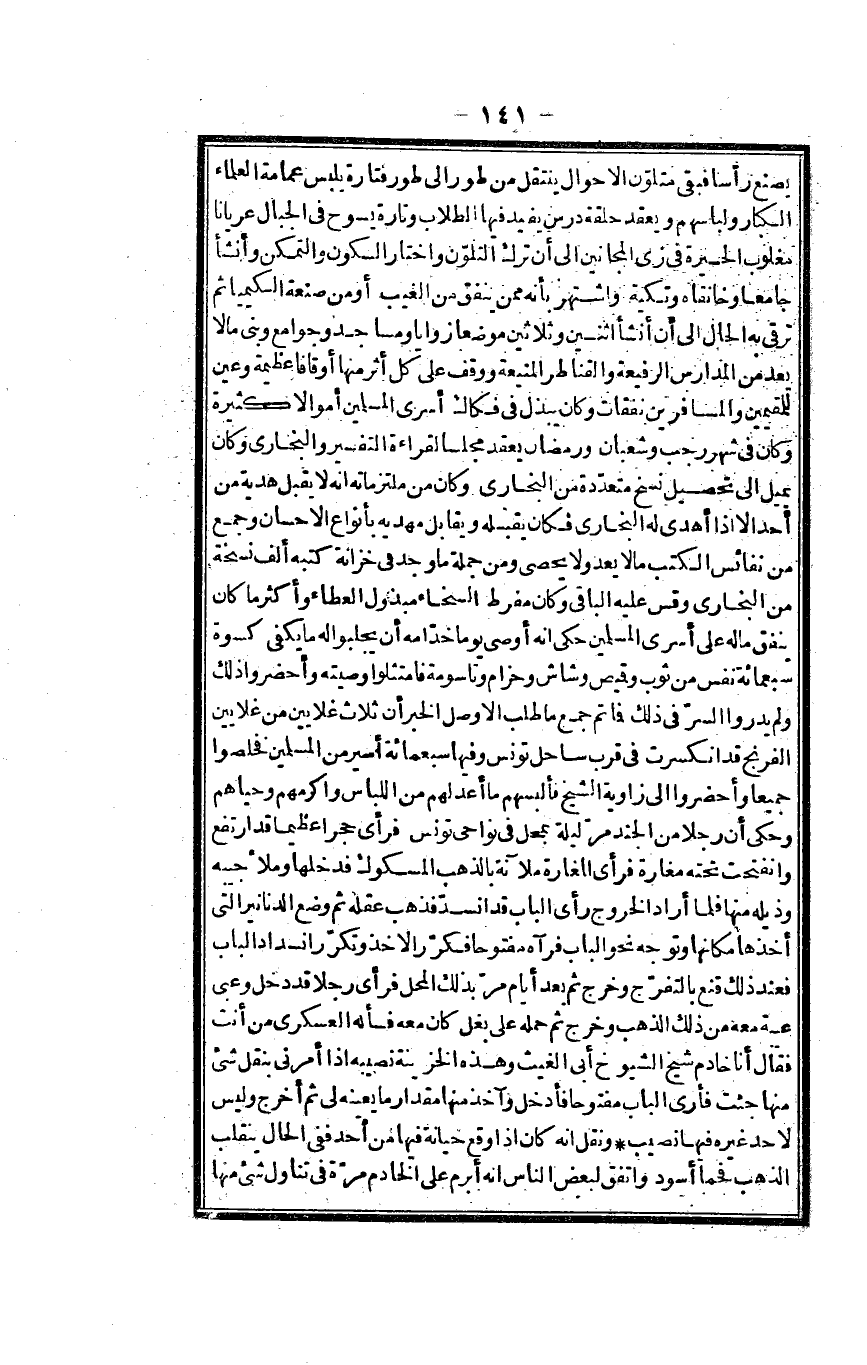 يصنع رَأْسا فَبَقيَ متلون الْأَحْوَال ينْتَقل من طور إِلَى طور فَتَارَة يلبس عِمَامَة الْعلمَاء الْكِبَار ولباسهم ويعقد حَلقَة درس يُفِيد فِيهَا الطلاب وَتارَة يسوح فِي الْجبَال عُريَانا مغلوب الْحيرَة فِي زِيّ المجانين إِلَى أَن ترك التلون وَاخْتَارَ السّكُون والتمكن وَأَنْشَأَ جَامعا وخانقاه وتكية واشتهر بِأَنَّهُ مِمَّن ينْفق من الْغَيْب أَو من صَنْعَة الكيميا ثمَّ ترقى بِهِ الْحَال إِلَى أَن أنشأ اثنيها وَثَلَاثِينَ موضعا زَوَايَا ومساجد وجوامع وَبنى مَالا يعد من الْمدَارِس الرفعية والقناطر المنيعة ووقف على كل أثر مِنْهَا أوقافاً عَظِيمَة وَعين للمقيمين والمسافرين نفقات وَكَانَ يبْذل فِي فكاك أسرى الْمُسلمين أَمْوَالًا كَثِيرَة وَكَانَ فِي شهر رَجَب وَشَعْبَان ورمضان يعْقد مَجْلِسا لقِرَاءَة التَّفْسِير وَالْبُخَارِيّ وَكَانَ يمِيل إِلَى تَحْصِيل نسخ مُتعَدِّدَة من البُخَارِيّ وَكَانَ من ملتزماته أَنه لَا يقبل هَدِيَّة من أحد إِلَّا إِذا أهْدى لَهُ البُخَارِيّ فَكَانَ يقبله ويقابل مهديه بأنواع الْإِحْسَان وَجمع من نفائس الْكتب مَالا يعد وَلَا يُحْصى وَمن جملَة مَا وجد فِي خزانَة كتبه ألف نُسْخَة من البُخَارِيّ وَقس عَلَيْهِ الْبَاقِي وَكَانَ مفرط السخاء مبذول الْعَطاء وَأكْثر مَا كَانَ ينْفق مَاله على أسرى الْمُسلمين حكى أَنه أوصى يَوْمًا خُدَّامه أَن يجلبوا لَهُ مَا يَكْفِي كسْوَة سَبْعمِائة نفس من ثوب وقميص وشاش وحزام قاسومة فامتثلوا وَصيته وأحضروا ذَلِك وَلم يدروا السِّرّ فِي ذَلِك فَمَا تمّ جمع مَا طلب إِلَّا وصل الْخَبَر أَن ثَلَاث غلايين من غلايين الفرنج قد انْكَسَرت فِي قرب سَاحل تونس وفيهَا سَبْعمِائة أَسِير من الْمُسلمين فخلصوا جَمِيعًا وأحضروا إِلَى زَاوِيَة الشَّيْخ فألبسهم مَا أعد لَهُم من اللبَاس وَأكْرمهمْ وحياهم وَحكى أَن رجلا من الْجند مر لَيْلَة بِمحل فِي نواحي تونس فَرَأى حجرا عَظِيما قد ارْتَفع وانفتحت تَحْتَهُ مغارة فَرَأى المغارة ملآنة بِالذَّهَب المسكوك فَدَخلَهَا وملأ جيبه وذيله مِنْهَا فَلَمَّا أَرَادَ الْخُرُوج رأى الْبَاب قد انسد فَذهب عقله ثمَّ وضع الدَّنَانِير الَّتِي أَخذهَا مَكَانهَا وَتوجه نَحْو الْبَاب فَرَآهُ مَفْتُوحًا فكرر الْأَخْذ وتكرر انسداد الْبَاب فَعِنْدَ ذَلِك قنع بالتفرج وَخرج ثمَّ بعد أَيَّام مر بذلك الْمحل فَرَأى رجلا قد دخل وعبى عبه مَعَه من ذَلِك الذَّهَب وَخرج ثمَّ حمله على بغل كَانَ مَعَه فَسَأَلَهُ العسكري من أَنْت فَقَالَ أَنا خَادِم شيخ الشُّيُوخ أبي الْغَيْث وَهَذِه الخزينة نصِيبه إِذا أَمرنِي بِنَقْل شَيْء مِنْهَا جِئْت فَأرى الْبَاب مَفْتُوحًا فَأدْخل وآخذ مِنْهَا مِقْدَار مَا يُعينهُ لي ثمَّ أخرج وَلَيْسَ لأحد غَيره فِيهَا نصيب وَنقل أَنه كَانَ إِذا قع خِيَانَة فِيهَا من أحد فَفِي الْحَال يَنْقَلِب الذَّهَب فحماً أسود وَاتفقَ لبَعض النَّاس أَنه أبرم على الْخَادِم مرّة فِي تنَاول شَيْء مِنْهَا