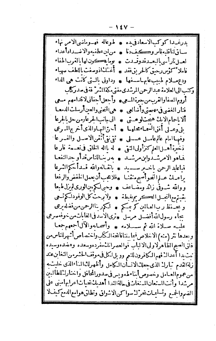 وَكتب إِلَى الْعَلامَة عبد الرَّحْمَن المرشدي مفتي مَكَّة المشرفة فِي صدر كتاب