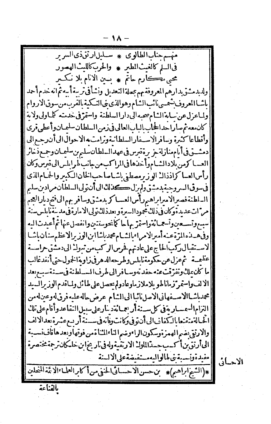 الشَّيْخ إِبْرَاهِيم بن حسن الإحسائي الْحَنَفِيّ من أكَابِر الْعلمَاء الْأَئِمَّة المتحلين