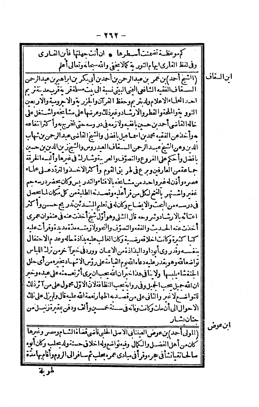 (كم موعظة تَضَمَّنت أسطرها ... إِن أَنْت جهلهتها فَأَيْنَ الْقَارِي)
