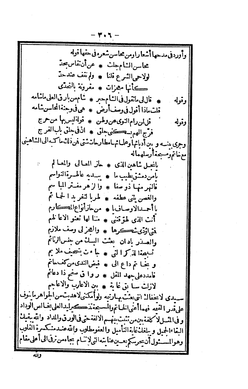 (محَاسِن الشَّام جلت ... عَن أَن تقاس بِحَدّ)