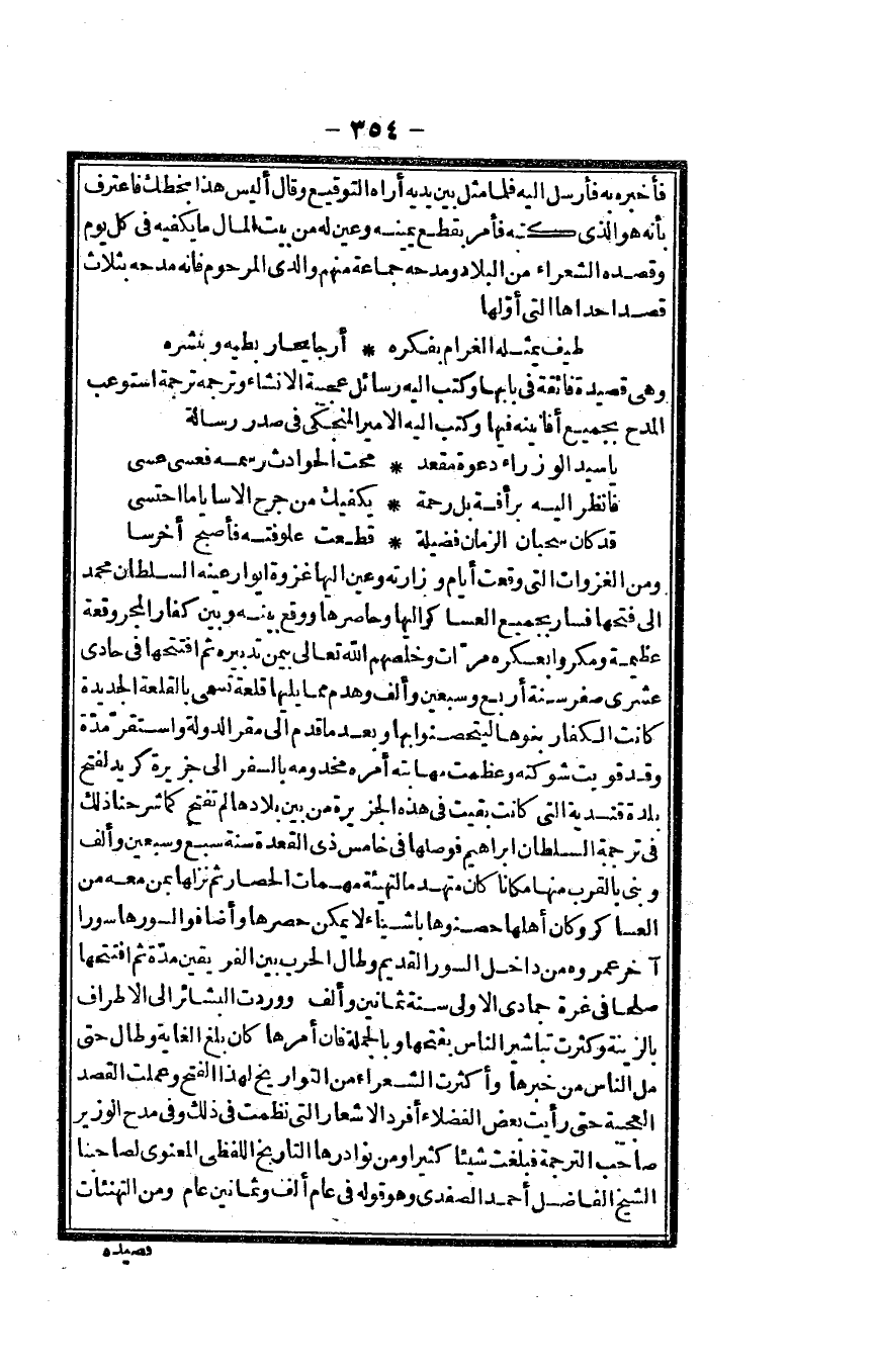 وَهِي قصيدة فائقة فِي بَابهَا وَكتب إِلَيْهِ رسائل عَجِيبَة الْإِنْشَاء وترجمه تَرْجَمَة استوعب الْمَدْح بِجَمِيعِ أفانينه فِيهَا وَكتب إِلَيْهِ الْأَمِير المنجكي فِي صدر رِسَالَة