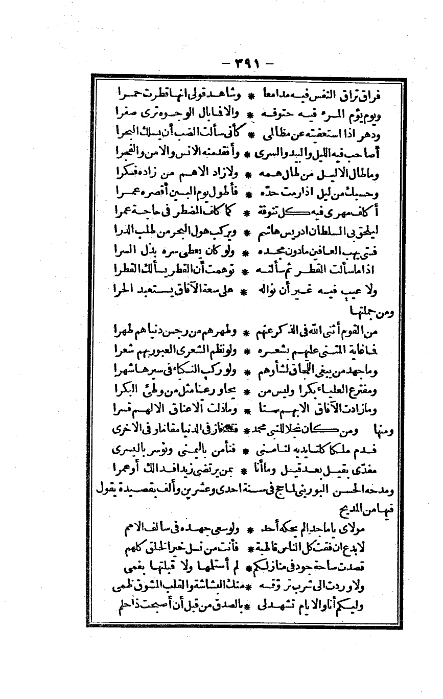 (مولَايَ يَا ماجد لم يحكه أحد ... وَلَو سعى جهده فِي سالف الْأُمَم)