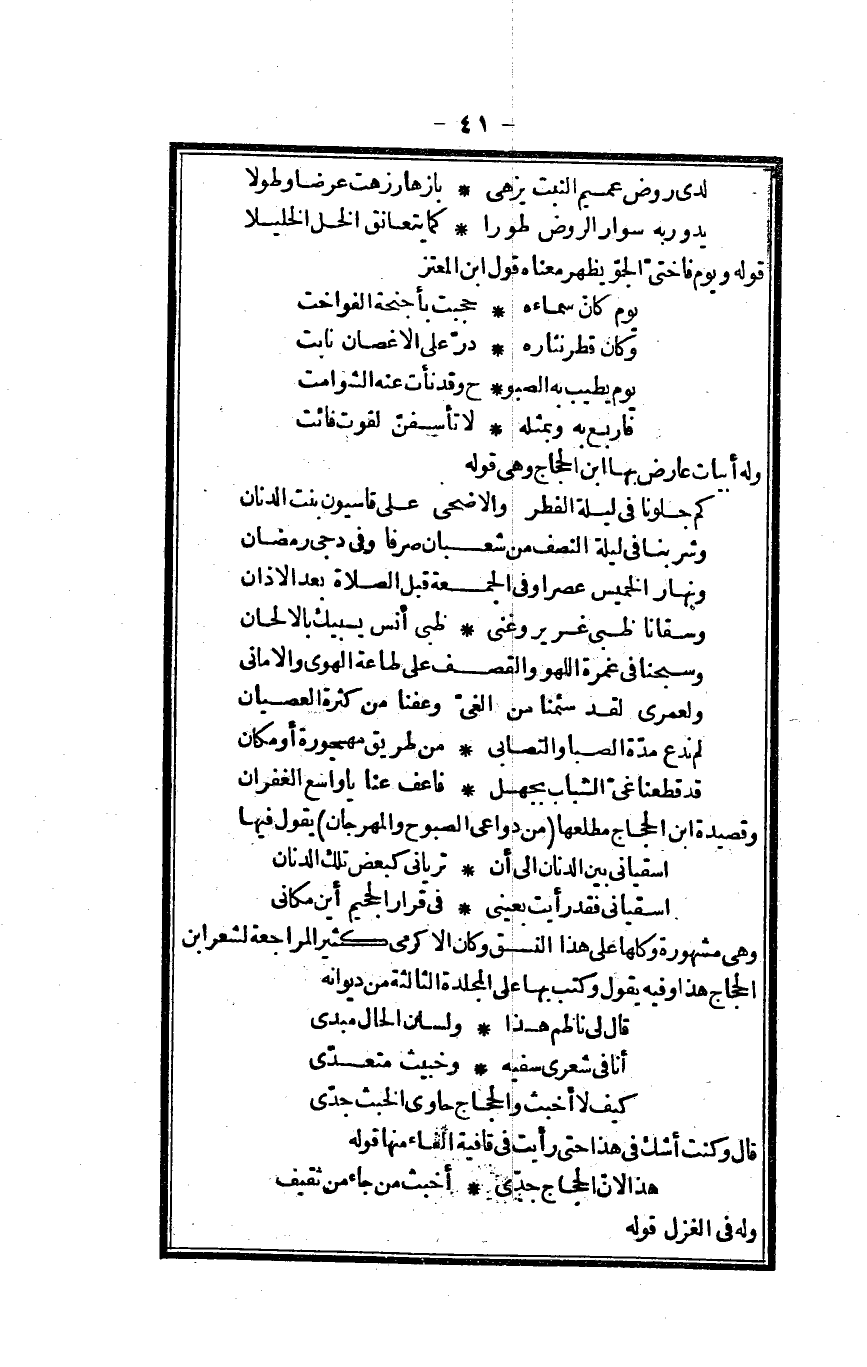وَهِي مَشْهُورَة وَكلهَا على هَذَا النسق وَكَانَ الأكرمي كثير الْمُرَاجَعَة لشعر بن الْحجَّاج هَذَا وَفِيه يَقُول وَكتب بهَا على المجلدة الثَّالِثَة من ديوانه