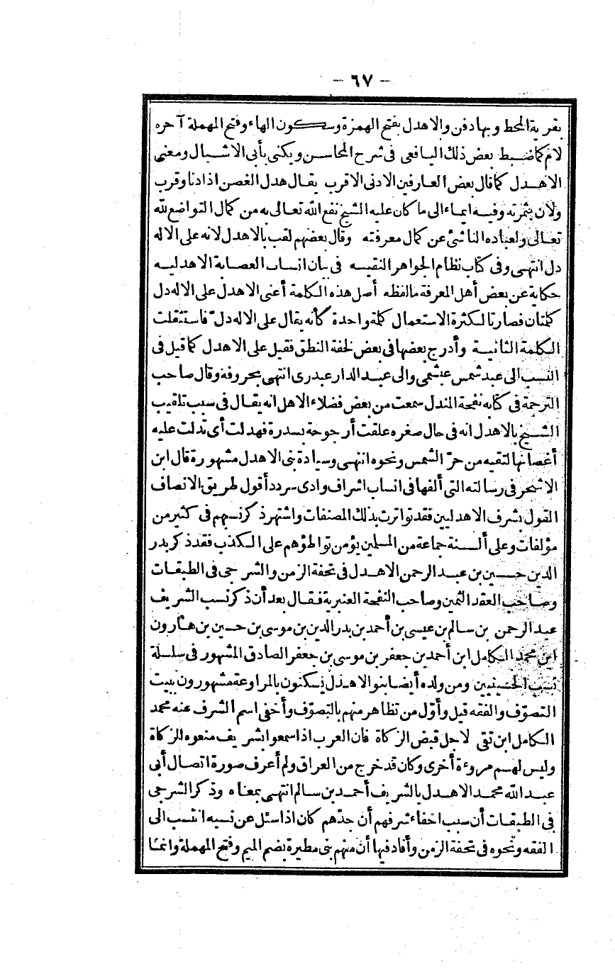 بقرية المحط وَبهَا دفن والأهدل بِفَتْح الْهمزَة وَسُكُون الْهَاء وَفتح الْمُهْملَة آخِره لَام كَمَا ضبط بعض ذَلِك اليافعي فِي شرح المحاسن ويكني بِأبي الأشبال وَمعنى الأهدل كَمَا قَالَ بعض العارفين الْأَدْنَى الْأَقْرَب يُقَال هدل الْغُصْن إِذا دنا وَقرب ولان بثمرته وَفِيه يماء إِلَى مَا كَانَ عَلَيْهِ الشَّيْخ نفع الله تَعَالَى بِهِ من كَمَال التَّوَاضُع لله تَعَالَى ولعباده الناشىء عَن كَمَال مَعْرفَته وَقَالَ بَعضهم لقب بالأهدل لِأَنَّهُ على الْإِلَه دلّ انْتهى وَفِي كتاب نظام الْجَوَاهِر النقية فِي بَيَان اسناب الْعِصَابَة الأهدلية حِكَايَة عَن بعض أهل الْمعرفَة مَا لَفظه أصل هَذِه الْكَلِمَة أَعنِي الأهدل على الاله دلّ كلمتان فَصَارَت لِكَثْرَة الِاسْتِعْمَال كلمة وَاحِدَة كَأَنَّهُ يُقَال على الاله دلّ فاستثقلت الْكَلِمَة الثَّانِيَة وأدرج بَعْضهَا فِي بعض لخفة النُّطْق فَقيل على الأهدل كَمَا قيل فِي النّسَب إِلَى عبد شمس عبشمي وَإِلَى عبد الدَّار عبدري انْتهى بِحُرُوفِهِ وَقَالَ صَاحب التَّرْجَمَة فِي كِتَابه نفحة المندل سَمِعت من بعض فضلاء الْأَهْل أَنه يُقَال فِي سَبَب تلقيب الشَّيْخ بالأهدل أَنه فِي حَال صغره علقت أرجوحة بسدرة فهدلت أَي تدلت عَلَيْهِ أَغْصَانهَا لتقيه من حر الشَّمْس وَنَحْوه انْتهى وسيادة بني الأهدل مَشْهُورَة قَالَ ابْن الأشحر فِي رسَالَته الَّتِي ألفها فِي أَنْسَاب أَشْرَاف وَادي سردد أَقُول طَرِيق الانصاف القَوْل بشرف الأهدليين فقد تَوَاتَرَتْ بذلك المصنفات واشتهر ذكر نسبهم فِي كثير من مؤلفات وعَلى أَلْسِنَة جمَاعَة من الْمُسلمين يُؤمن تواطؤهم على الْكَذِب فقد ذكر بدر الدّين حُسَيْن بن عبد الرَّحْمَن الأهدل فِي تحفة الزَّمن والشرجي فِي الطَّبَقَات وَصَاحب العقد الثمين وَصَاحب النفحة العنبرية فَقَالَ بعد أَن ذكر نسب الشريف عبد الرَّحْمَن بن سَالم بن عِيسَى بن أَحْمد بن بدر الدّين بن مُوسَى بن حُسَيْن بن هَارُون ابْن مُحَمَّد الْكَامِل ابْن أَحْمد بن جَعْفَر بن مُوسَى بن جَعْفَر الصَّادِق الْمَشْهُور فِي سلسلة نسب الحسينيين وَمن وَلَده أَيْضا بَنو الأهدل يسكنون بالمراوعة مَشْهُورُونَ بِبَيْت التصوف وَالْفِقْه قيل وَأول من تظاهر مِنْهُم بالتصوف وأخفى اسْم الشّرف عَنهُ مُحَمَّد الْكَامِل ابْن تَقِيّ لأجل قبض الزَّكَاة فَإِن الْعَرَب إِذا سمعُوا بشريف منعُوهُ الزَّكَاة وَلَيْسَ لَهُم مُرُوءَة أُخْرَى وَكَانَ قد خرج من الْعرَاق وَلم أعرف صُورَة اتِّصَال أبي عبد الله مُحَمَّد الأهدل بالشريف أَحْمد بن سَالم انْتهى بِمَعْنَاهُ وَذكر الشرجي فِي الطَّبَقَات أَن سَبَب اخفاء شرفهم أَن جدهم كَانَ إِذا سُئِلَ عَن نسبه انتسب إِلَى الْفِقْه وَنَحْوه فِي تحفة الزَّمن وَأفَاد فِيهَا أَن مِنْهُم بني مطيرة بِضَم الْمِيم وَفتح الْمُهْملَة وَإِنَّمَا