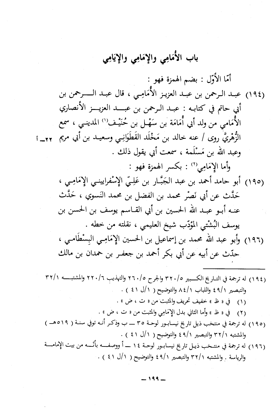 195 - أَبُو حَامِد أَحْمد بن عبد الْجَبَّار بن عَليّ الإِسْفِرَايِينِيّ الإمامي حدث عَن أبي نصر مُحَمَّد بن الْفضل بن مُحَمَّد النسوي حدث عَنهُ أَبُو عبد الله الْحُسَيْن بن أبي الْقَاسِم يُوسُف بن الْحسن بن يُوسُف البشتي الْمُؤَدب شيخ العليمي نقلته من خطه