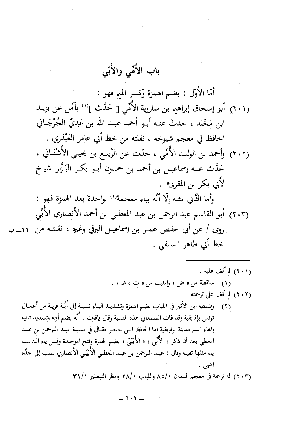 202 - وَأحمد بن الْوَلِيد الْأُمِّي حدث عَن الرّبيع بن يحيى الْأُشْنَانِي حدث عَنهُ إِسْمَاعِيل بن أَحْمد بن حمدون أَبُو بكر الْبَزَّار شيخ لأبي بكر بن المقرىء