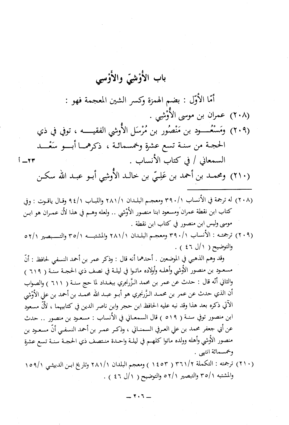 209 - ومسعود بن مَنْصُور بن مُرْسل الأوشي الْفَقِيه توفّي فِي ذِي الْحجَّة من سنة تسع عشرَة وَخَمْسمِائة ذكرهمَا أَبُو سعد السَّمْعَانِيّ فِي كتاب الْأَنْسَاب