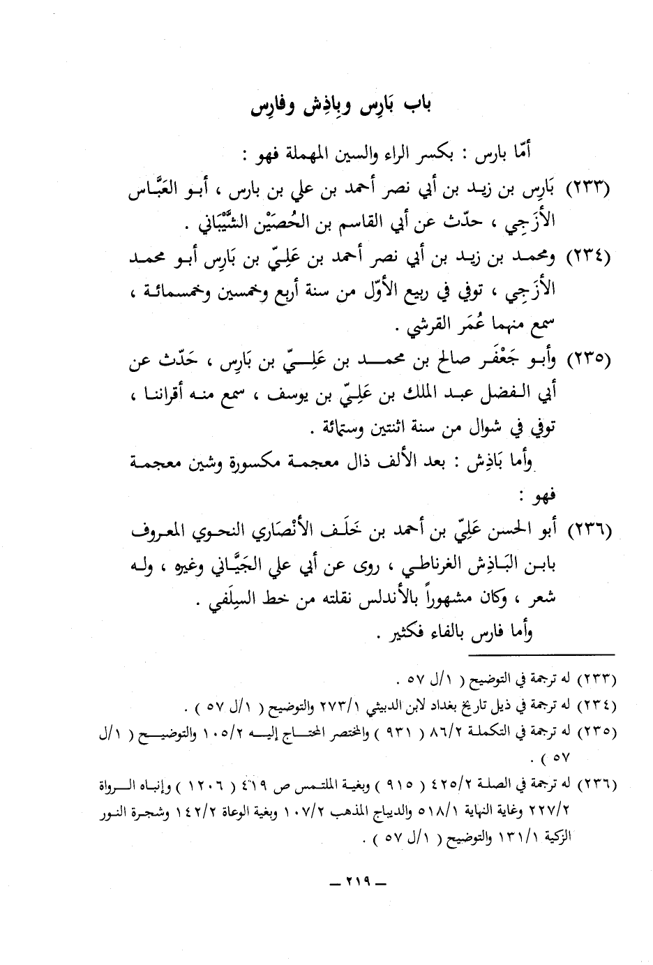 236 - أَبُو الْحسن عَليّ بن أَحْمد بن خلف الْأنْصَارِيّ النَّحْوِيّ الْمَعْرُوف بِابْن الباذش الغرناطي روى عَن أبي عَليّ الجياني وَغَيره وَله شعر وَكَانَ مَشْهُورا بالأندلس نقلته من خطّ السلَفِي