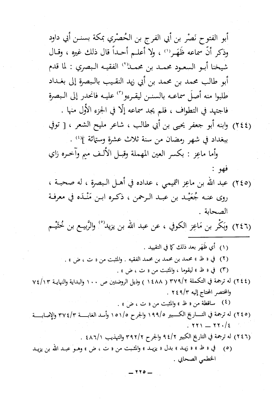 245 - عبد الله بن مَاعِز التَّمِيمِي عداده فِي أهل الْبَصْرَة لَهُ صُحْبَة روى عَنهُ جعيد بن عبد الرَّحْمَن ذكره ابْن مَنْدَه فِي معرفَة الصَّحَابَة