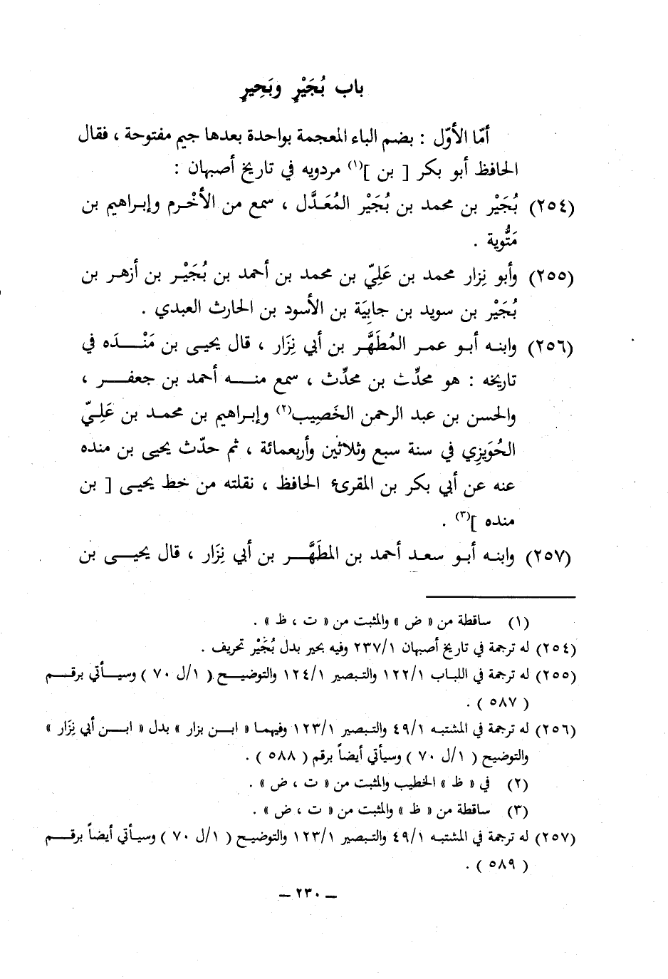 أما الأول بِضَم الْبَاء الْمُعْجَمَة بِوَاحِدَة بعْدهَا جِيم مَفْتُوحَة فَقَالَ الْحَافِظ ابو بكر بن مرْدَوَيْه فِي تَارِيخ أَصْبَهَان