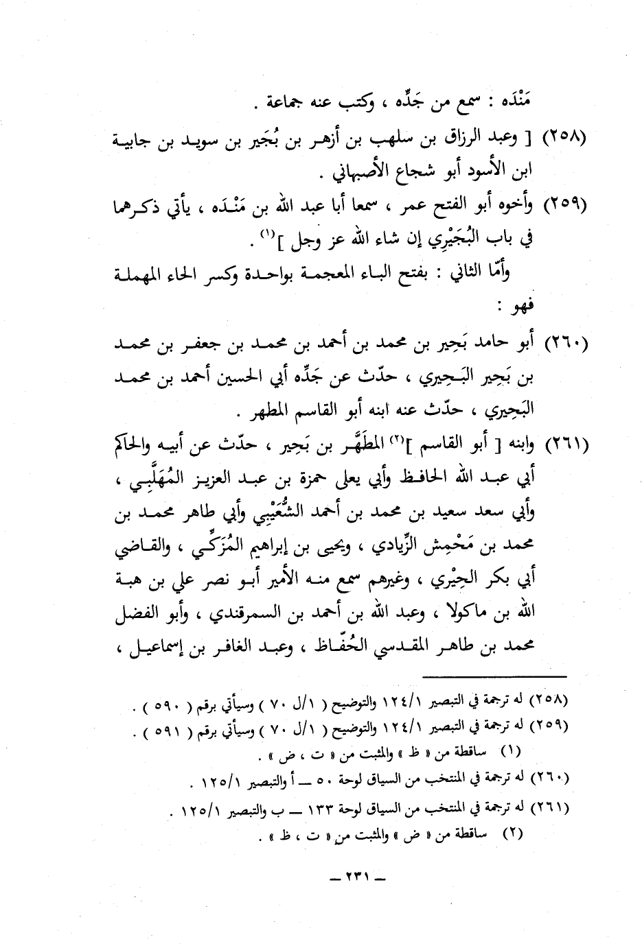 260 - أَبُو حَامِد بحير بن مُحَمَّد بن أَحْمد بن مُحَمَّد بن جَعْفَر بن مُحَمَّد بن بحير الْبُحَيْرِي حدث عَن جده أبي الْحُسَيْن أَحْمد بن مُحَمَّد الْبُحَيْرِي حدث عَنهُ ابْنه أَبُو الْقَاسِم المطهر