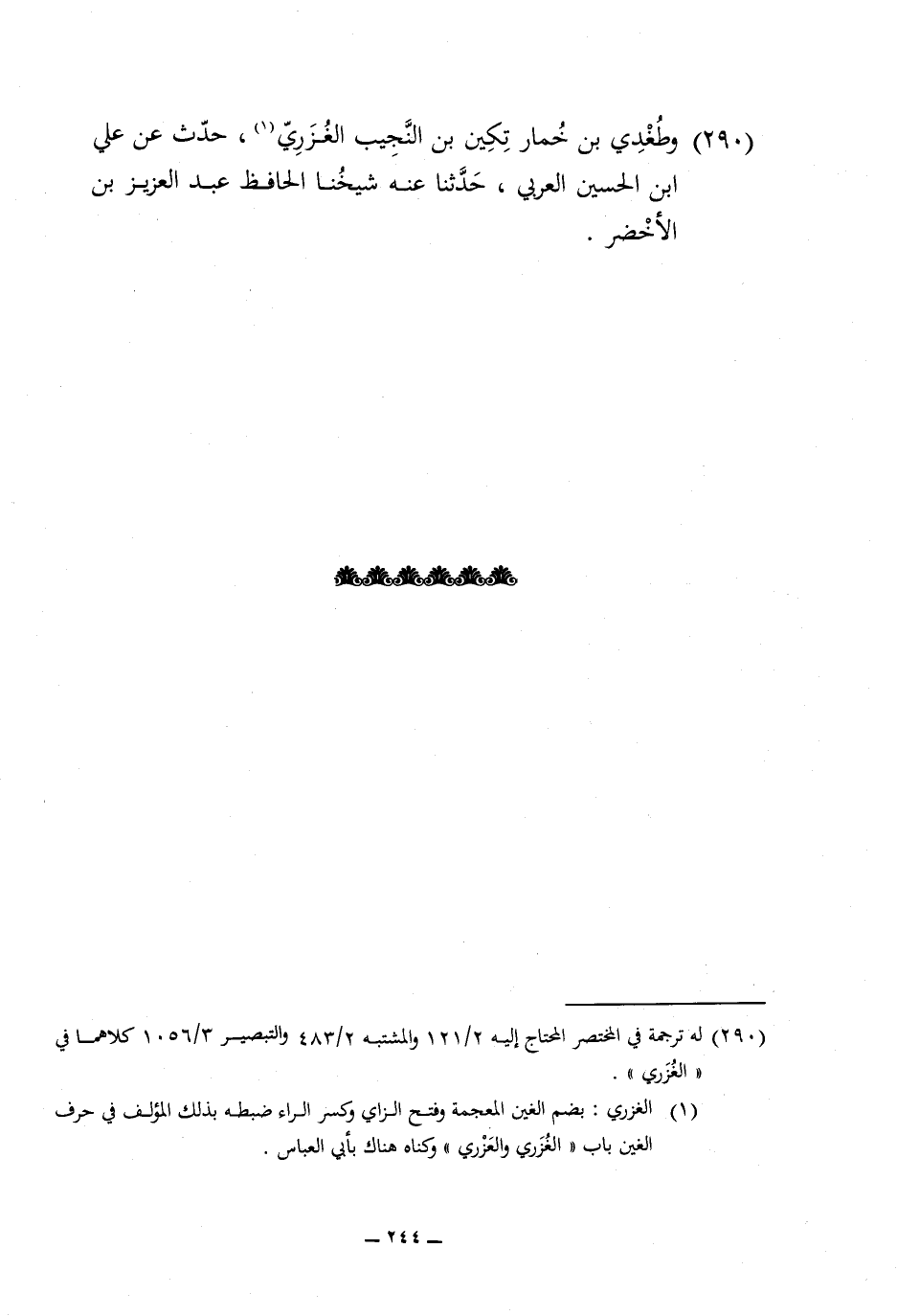290 - وطغدي بن خمار تكين بن النجيب الغزري حدث عَن عَليّ بن الْحُسَيْن الْعَرَبِيّ حَدثنَا عَنهُ شَيخنَا الْحَافِظ عبد الْعَزِيز بن الْأَخْضَر