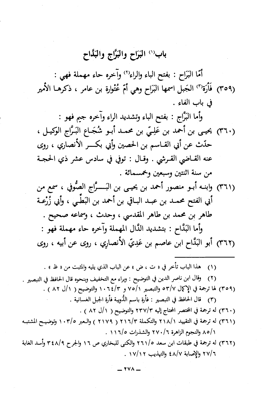 361 - وَابْنه أَبُو مَنْصُور أَحْمد بن يحيى بن البراج الصُّوفِي سمع من أبي الْفَتْح مُحَمَّد بن عبد الباقي بن أَحْمد بن البطي وَأبي زرْعَة طَاهِر بن مُحَمَّد بن طَاهِر الْمَقْدِسِي وَحدث وسماعه صَحِيح وَأما البداح بتَشْديد الدَّال الْمُهْملَة وَآخره حاء مُهْملَة فَهُوَ