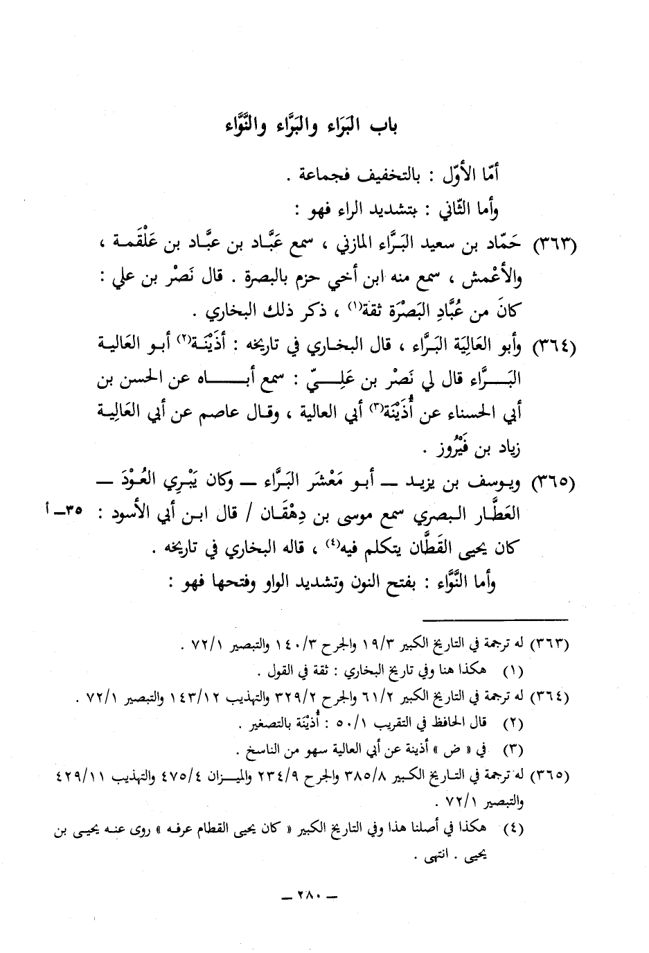 364 - وَأَبُو الْعَالِيَة الْبَراء قَالَ البُخَارِيّ فِي تَارِيخه أذينة أَبُو الْعَالِيَة الْبَراء قَالَ لي نصر بن عَليّ سمع أَبَاهُ عَن الْحسن بن ابي الْحَسْنَاء عَن أذينة أبي الْعَالِيَة وَقَالَ عَاصِم عَن أبي الْعَالِيَة زِيَاد بن فَيْرُوز