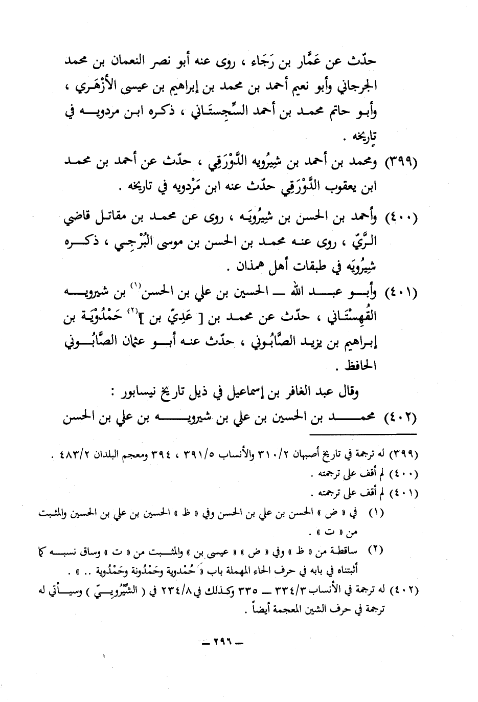 401 - وابو عبد الله الْحُسَيْن بن عَليّ بن الْحسن بن شيرويه الْقُهسْتَانِيّ حدث عَن مُحَمَّد بن عدي بن حَمْدَوَيْه بن إِبْرَاهِيم بن يزِيد الصَّابُونِي حدث عَنهُ أَبُو عُثْمَان الصَّابُونِي الْحَافِظ