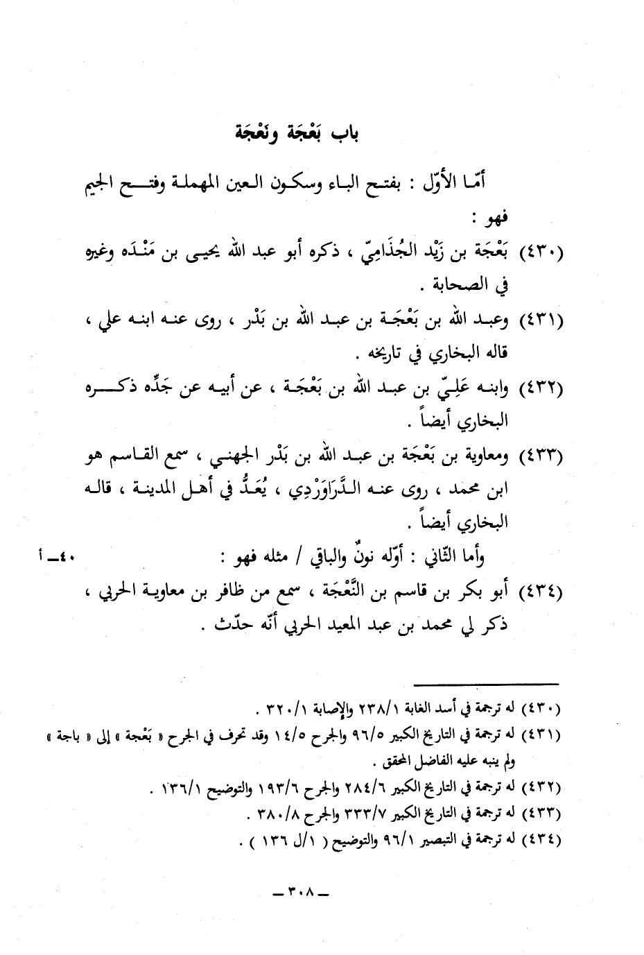 431 - وَعبد الله بن بعجة بن عبد الله بن بدر روى عَنهُ ابْنه عَليّ قَالَه البُخَارِيّ فِي تَارِيخه