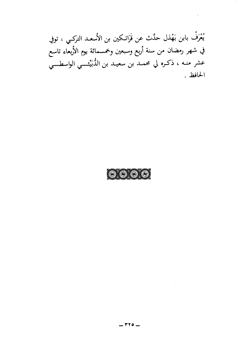 يعرف بِابْن بهدل حدث عَن قراتكين بن الأسعد التركي توفّي فِي شهر رَمَضَان من سنة أَربع وَسبعين وخمسائة يَوْم الْأَرْبَعَاء تَاسِع عشر مِنْهُ ذكره لي مُحَمَّد بن سعيد بن الدبيثي الوَاسِطِيّ الْحَافِظ
