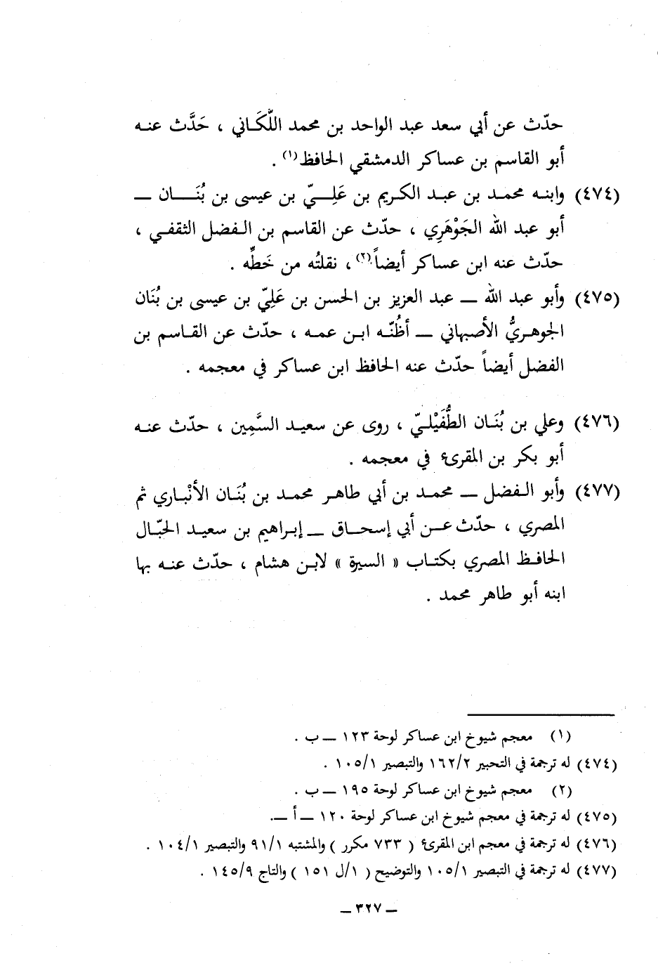 475 - وَأَبُو عبد الله عبد الْعَزِيز بن الْحسن بن عَليّ بن عِيسَى بن بنان الْجَوْهَرِي الْأَصْبَهَانِيّ أَظُنهُ ابْن عَمه حدث عَن الْقَاسِم بن الْفضل أَيْضا حدث عَنهُ الْحَافِظ ابْن عَسَاكِر فِي مُعْجَمه