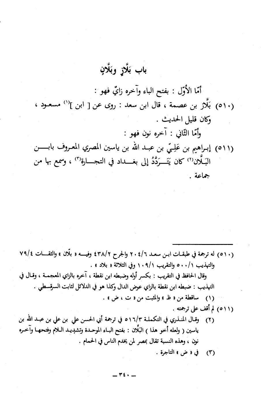 510 - بلاز بن عصمَة قَالَ ابْن سعد روى عَن ابْن مَسْعُود وَكَانَ قَلِيل الحَدِيث