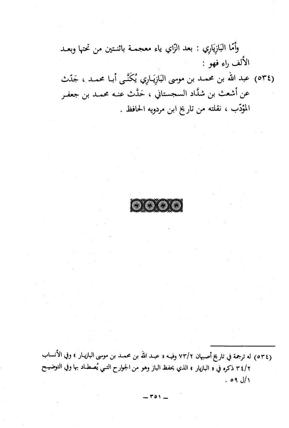 534 - عبد الله بن مُحَمَّد بن مُوسَى البازياري يكنى أَبَا مُحَمَّد جدث عَن أَشْعَث بن شَدَّاد السجسْتانِي حدث عَنهُ مُحَمَّد بن جَعْفَر الْمُؤَدب نقلته من تَارِيخ ابْن مرْدَوَيْه الْحَافِظ