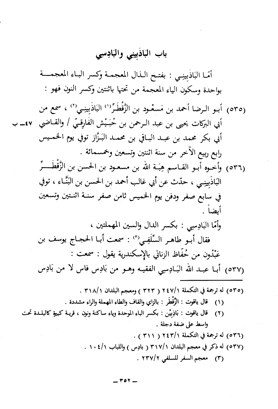 535 - أَبُو الرِّضَا أَحْمد بن مَسْعُود بن الزقطر الباذبيني سمع من أبي البركات يحيى بن عبد الرَّحْمَن بن حُبَيْش الفارقي وَالْقَاضِي أبي بكر مُحَمَّد بن عبد الْبَاقِي بن مُحَمَّد الْبَزَّاز توفّي يَوْم الْخَمِيس رَابِع ربيع الآخر من سنة اثْنَتَيْنِ وَتِسْعين وخمسائة
