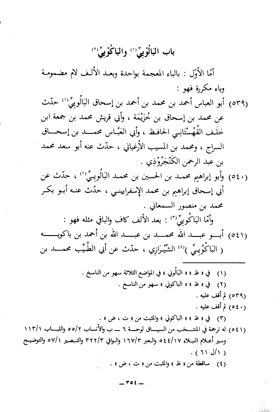 540 - وَأَبُو إِبْرَاهِيم مُحَمَّد بن الْحُسَيْن بن مُحَمَّد البالويي حدث عَن أبي إِسْحَاق إِبْرَاهِيم بن مُحَمَّد الإِسْفِرَايِينِيّ حدث عَنهُ أَبُو بكر مُحَمَّد بن مَنْصُور السَّمْعَانِيّ