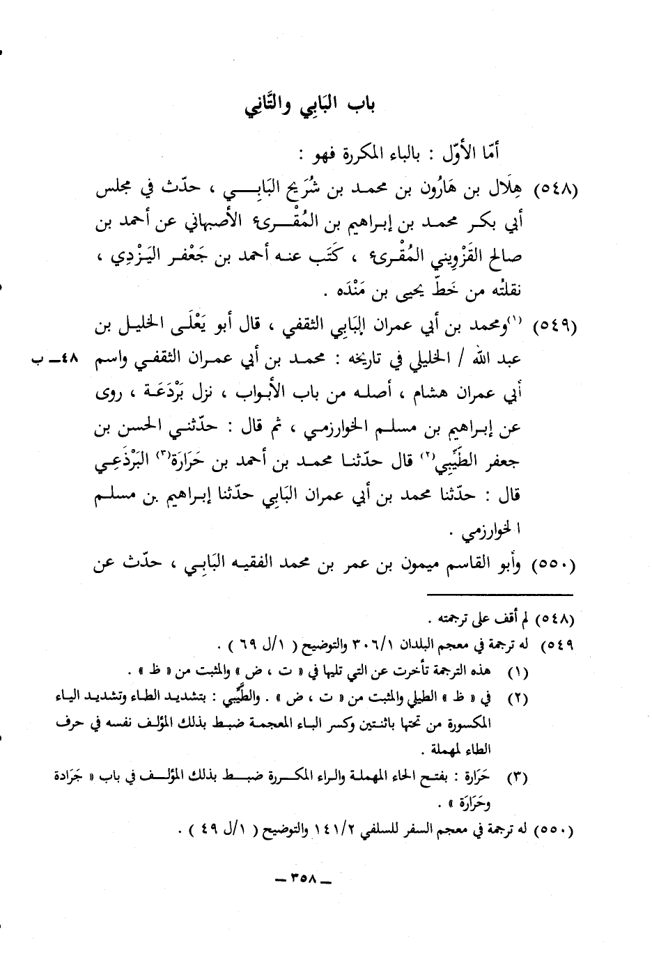 549 - وَمُحَمّد بن أبي عمرَان البابي الثَّقَفِيّ قَالَ أَبُو يعلى الْخَلِيل بن عبد الله الخليلي فِي تَارِيخه مُحَمَّد بن ابي عمرَان الثَّقَفِيّ وَاسم أبي عمرَان هِشَام اصله من بَاب الْأَبْوَاب نزل بردعة روى عَن إِبْرَاهِيم بن مُسلم الْخَوَارِزْمِيّ ثمَّ قَالَ حَدثنِي الْحسن بن جَعْفَر الطَّيِّبِيّ قَالَ حَدثنَا مُحَمَّد بن أحمدبن حرارة البرذعي قَالَ حَدثنَا مُحَمَّد بن ابي عمرَان البابي حَدثنَا إِبْرَاهِيم بن مُسلم الْخَوَارِزْمِيّ