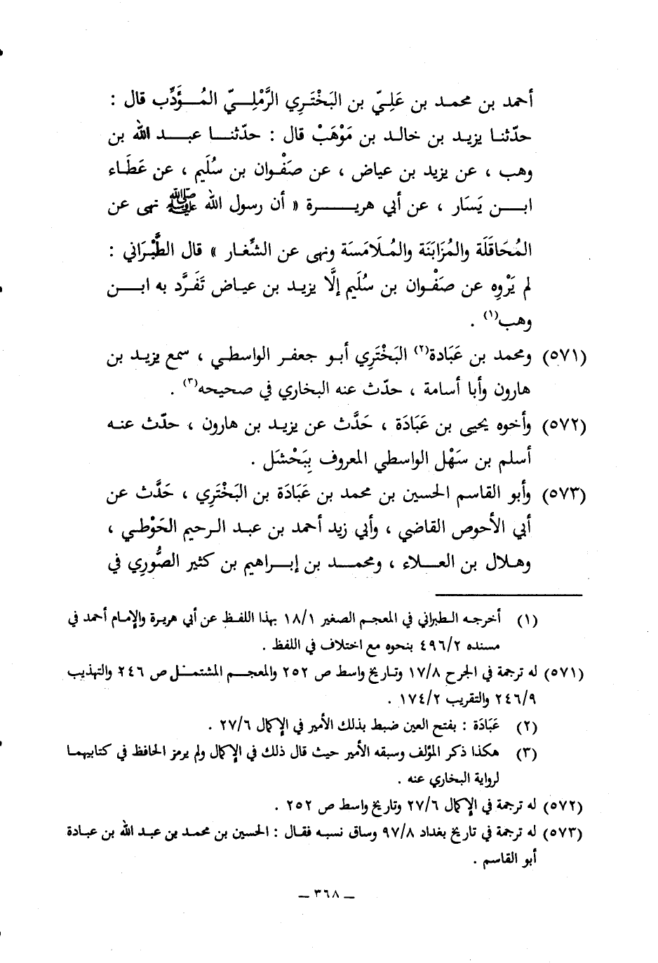 571 - وَمُحَمّد بن عبَادَة البخْترِي أَبُو جَعْفَر الوَاسِطِيّ سمع يزِيد بن هَارُون وابا أُسَامَة حدث عَنهُ البُخَارِيّ فِي صَحِيحه
