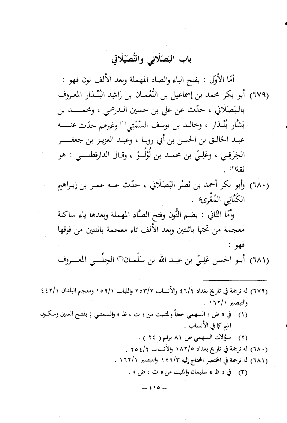 679 - أَبُو بكر مُحَمَّد بن إِسْمَاعِيل بن النُّعْمَان بن رَاشد البندار الْمَعْرُوف بالبصلاني حدث عَن عَليّ بن حُسَيْن الدرهمي وَمُحَمّد بن بشار بنْدَار وخَالِد بن يُوسُف السَّمْتِي وَغَيرهم حدث عَنهُ عبد الْخَالِق بن الْحسن بن ابي روبا وَعبد الْعَزِيز بن جَعْفَر الْخرقِيّ وَعلي بن مُحَمَّد بن لُؤْلُؤ وَقَالَ الدَّارَقُطْنِيّ هُوَ ثِقَة