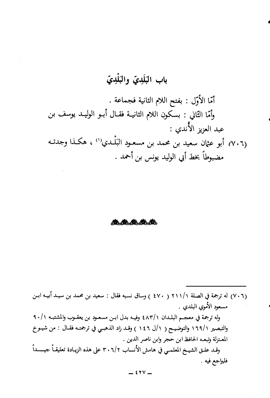 706 - أَبُو عُثْمَان سعيد بن مُحَمَّد بن مَسْعُود الْبَلَدِي هَكَذَا وجدته مضبوطا بِخَط أبي الْوَلِيد يُونُس بن أَحْمد