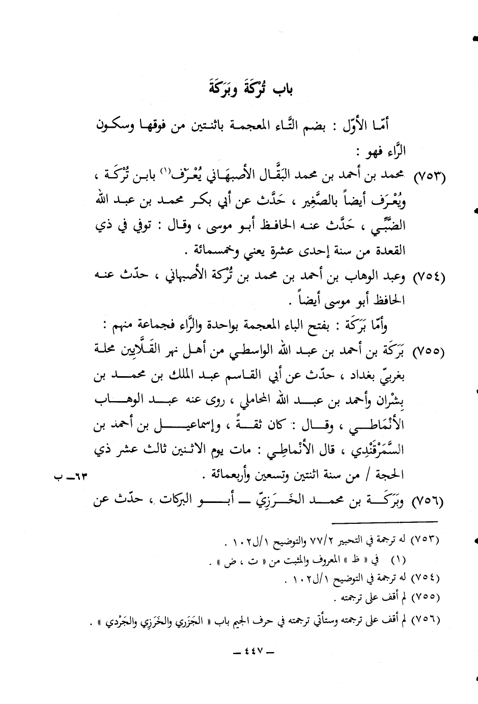 754 - وَعبد الْوَهَّاب بن أَحْمد بن مُحَمَّد بن تَرِكَة الْأَصْبَهَانِيّ حدث عَنهُ الْحَافِظ أَبُو مُوسَى أَيْضا