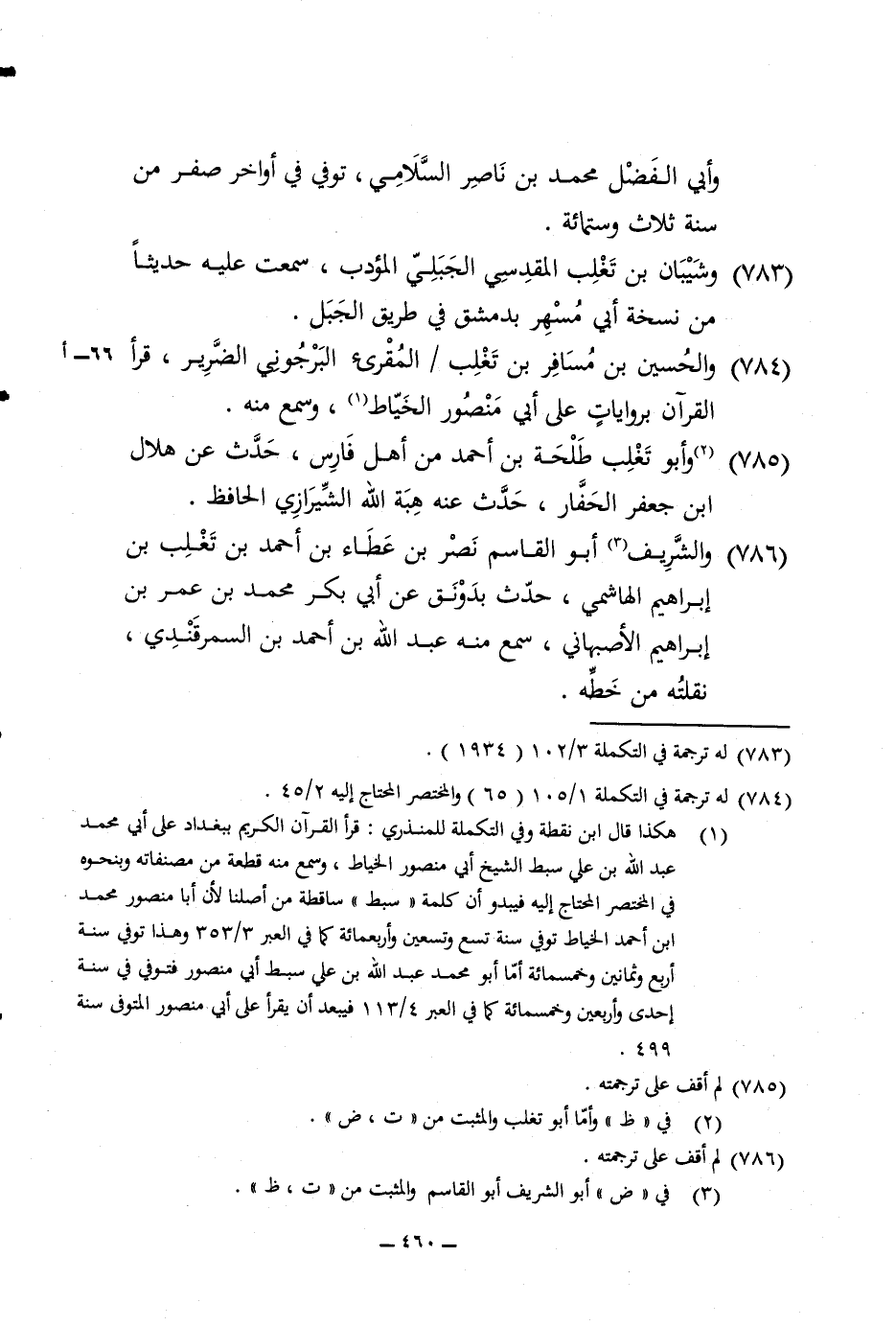 785 - وَأَبُو تغلب طَلْحَة بن أَحْمد من أهل فَارس حدث عَن هِلَال ابْن جَعْفَر الحفار حدث عَنهُ هبة الله الشِّيرَازِيّ الْحَافِظ