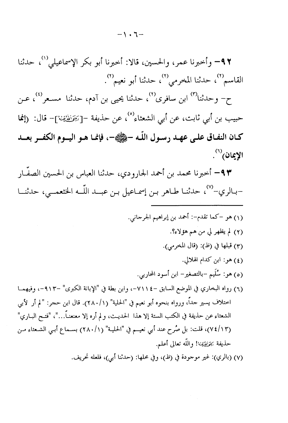 92 - وَأَخْبَرَنَا عُمَرُ وَالْحُسَيْنُ قَالَا أَخْبَرَنَا أَبُو بَكْرٍ الْإِسْمَاعِيلِيُّ حَدَّثَنَا الْقَاسِمُ حَدَّثَنَا الْمُخَرَّمِيُّ حَدَّثَنَا أَبُو نُعَيْمٍ