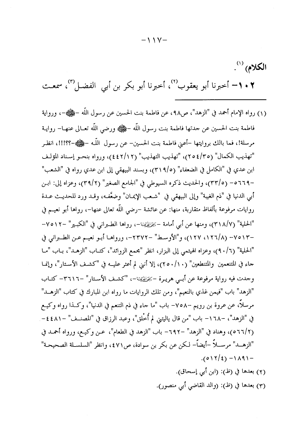 102 - أَخْبَرَنَا أَبُو يَعْقُوبَ أَخْبَرَنَا أَبُو بَكْرِ بْنُ أَبِي الْفَضْلِ سَمِعْتُ