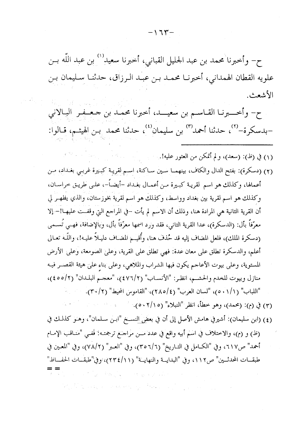 ح وَأَخْبَرَنَا الْقَاسِمُ بْنُ سَعِيدٍ أَخْبَرَنَا مُحَمَّدُ بْنُ جَعْفَرٍ الْبَالَانِيُّ بِدَسْكَرَةَ حَدَّثَنَا أَحْمَدُ بْنُ سُلَيْمَانَ حَدَّثَنَا مُحَمَّدُ بْنُ الْهَيْثَمِ قَالُوا