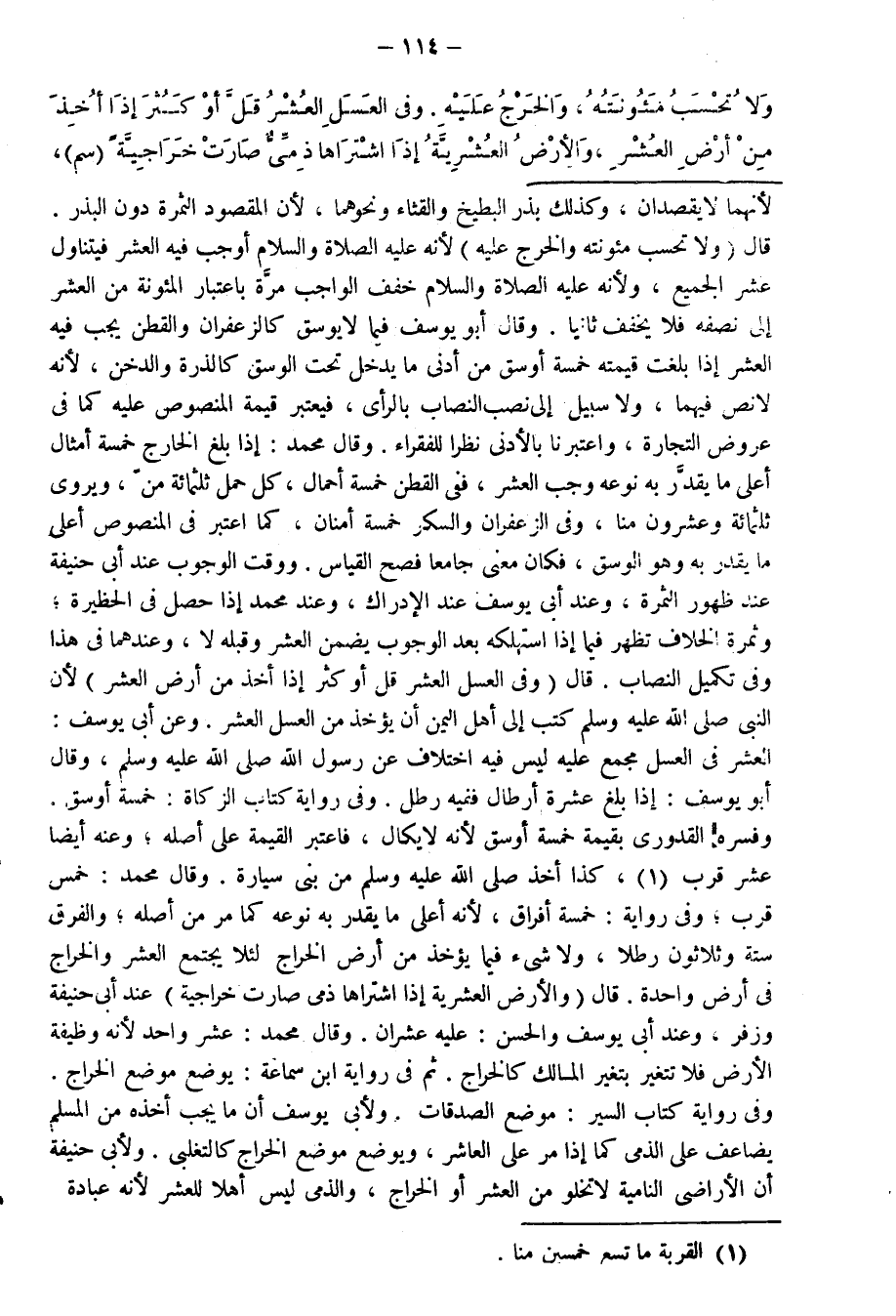 وَلَا تُحْسَبُ مَؤُونَتُهُ وَالْخَرْجُ عَلَيْهِ. وَفِي الْعَسَلِ الْعُشْرُ قَلَّ أَوْ كَثُرَ إِذَا أُخِذَ مِنْ أَرْضِ الْعُشْرِ، وَالْأَرْضُ الْعُشْرِيَّةُ إِذَا اشْتَرَاهَا ذِمِّيٌّ صَارَتْ خَرَاجِيَّةً (سم) ،