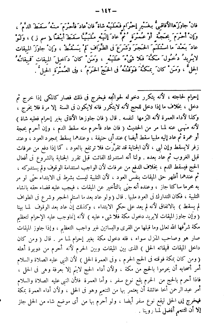 ـــــــــــــــــــــــــــــQإِحْرَامٍ لِحَاجَتِهِ؛ لِأَنَّهُ يَتَكَرَّرُ دُخُولُهُ لِحَوَائِجِهِ فَيَخْرُجُ فِي ذَلِكَ فَصَارَ كَالْمَكِّيِّ إِذَا خَرَجَ ثُمَّ دَخَلَ، بِخِلَافِ مَا إِذَا دَخَلَ لِلْحَجِّ لِأَنَّهُ لَا يَتَكَرَّرُ فَإِنَّهُ لَا يَكُونُ فِي السَّنَةِ إِلَّا مَرَّةً فَلَا يَخْرُجُ، وَكَذَا لِأَدَاءِ الْعُمْرَةِ لِأَنَّهُ الْتَزَمَهَا لِنَفْسِهِ.