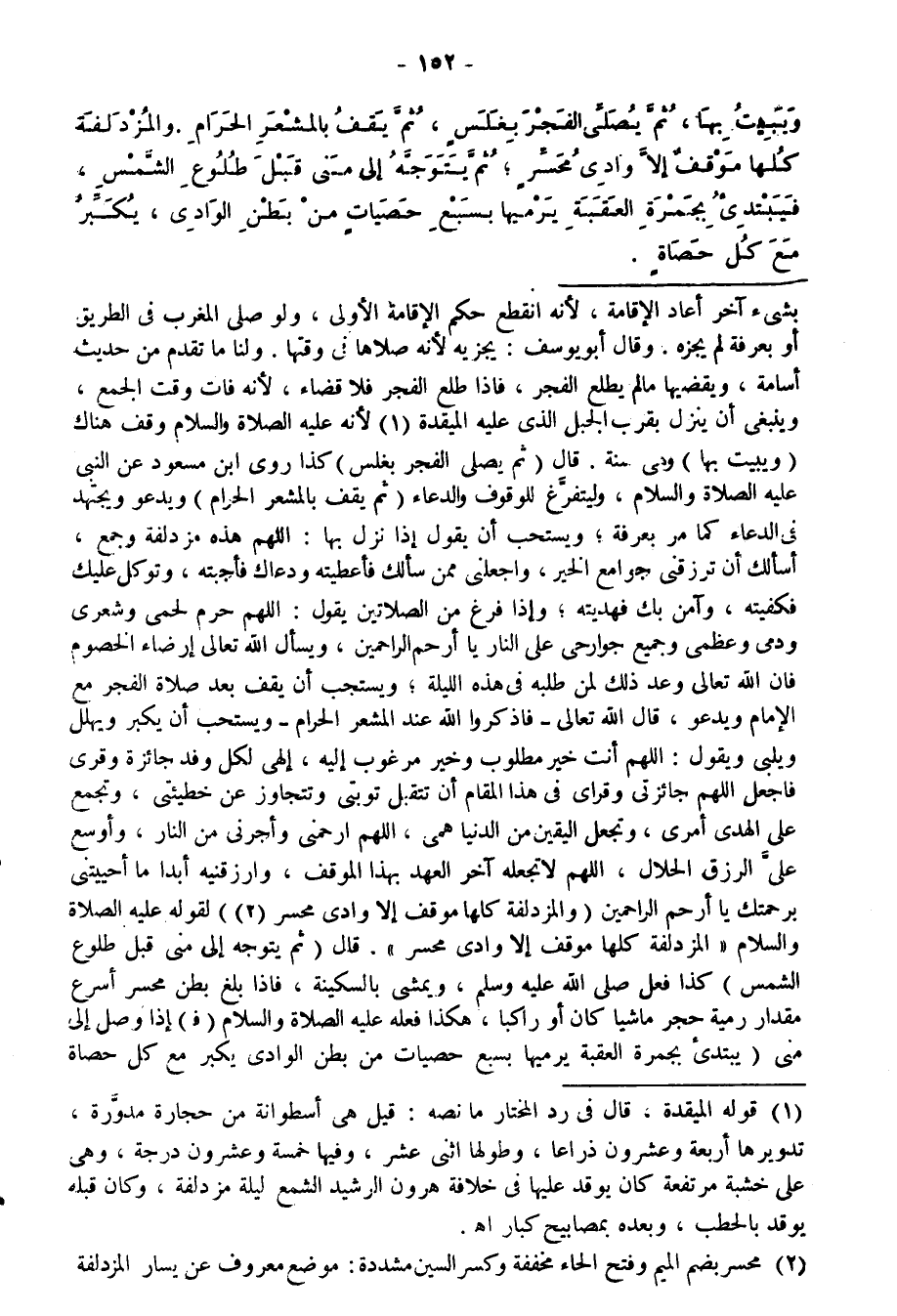 (وَالْمُزْدَلِفَةُ كُلُّهَا مُوْقِفٌ إِلَّا وَادِي مُحَسِّرٍ لِقَوْلِهِ - عَلَيْهِ الصَّلَاةُ وَالسَّلَامُ -: «الْمُزْدَلِفَةُ كُلُّهَا مَوْقِفٌ إِلَّا وَادِي مُحَسِّرٍ» .